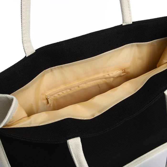 Сумка пляжная без застёжки, цвет молочный/чёрный