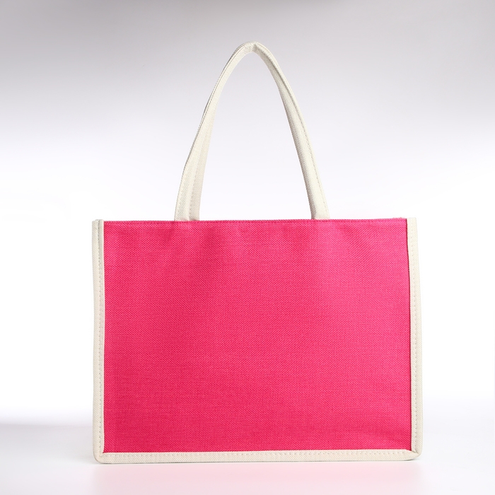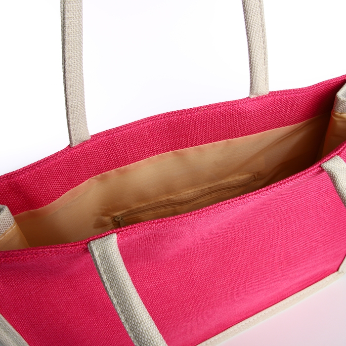 Сумка пляжная без застёжки, цвет молочный/малиновый
