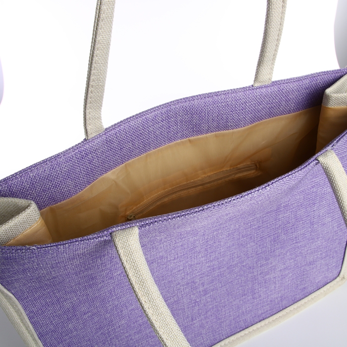 Сумка пляжная без застёжки, цвет молочный/сиреневый