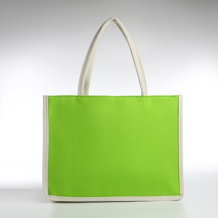 Сумка пляжная без застёжки, цвет молочный/салатовый