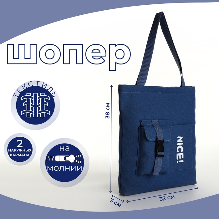 Шопер на молнии, из текстиля, цвет синий
