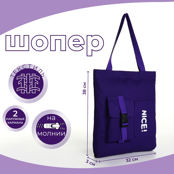 Шопер на молнии, из текстиля, цвет сиреневый