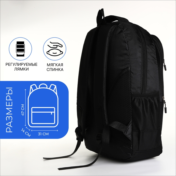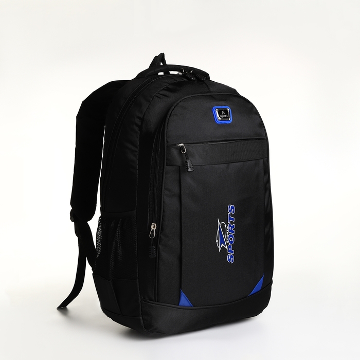 Рюкзак школьный на молнии, 4 кармана, цвет чёрный/синий