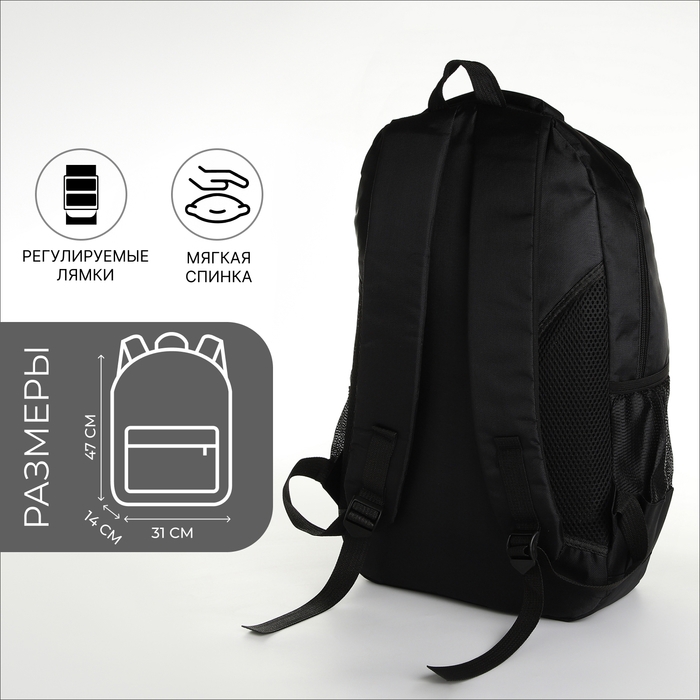 Рюкзак школьный на молнии, 4 кармана, цвет чёрный