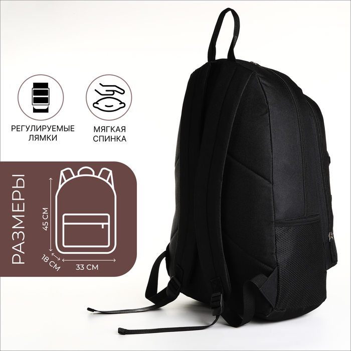 Рюкзак школьный на молнии, 3 кармана, цвет чёрный