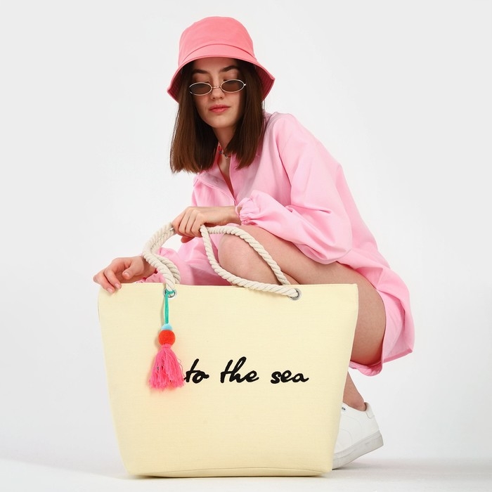 Сумка женская пляжная Into the sea, 50х34,5х14 см, бежевый цвет