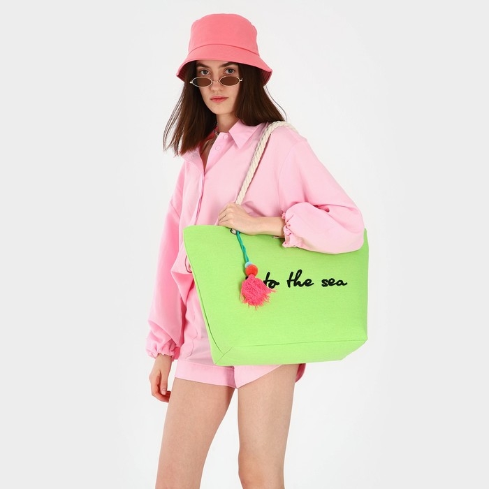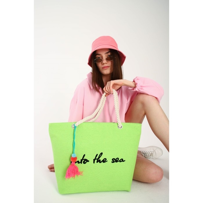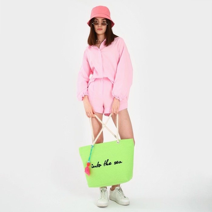 Сумка женская пляжная Into the sea, 50х34,5х14 см, зелёный цвет