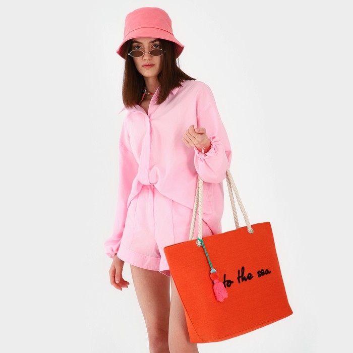 Сумка женская пляжная Into the sea, 50х34,5х14 см, оранжевый цвет
