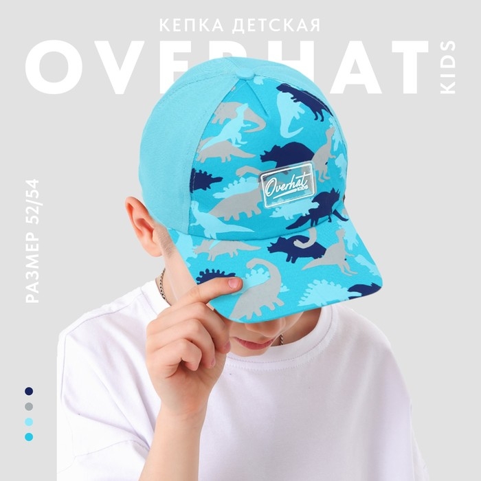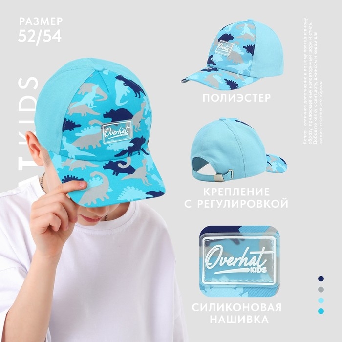 Кепка детская для мальчика «Динозавры», цвет голубой, р-р 52-54, 5-7 лет