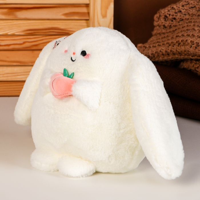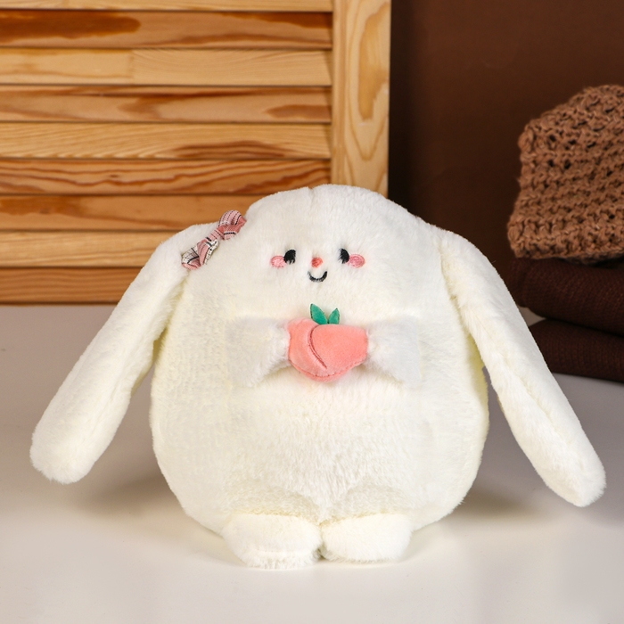Мягкая игрушка «Зайка с персиком», 20 см, цвет белый