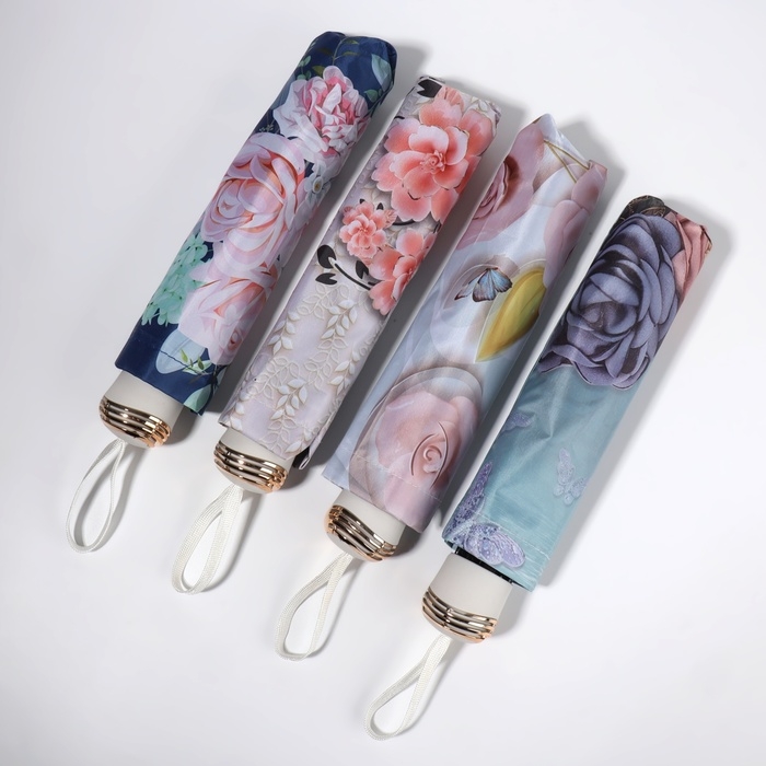 Зонт механический «Свежесть», эпонж, 4 сложения, 8 спиц, R = 47/55 см, D = 110 см, цвет МИКС
