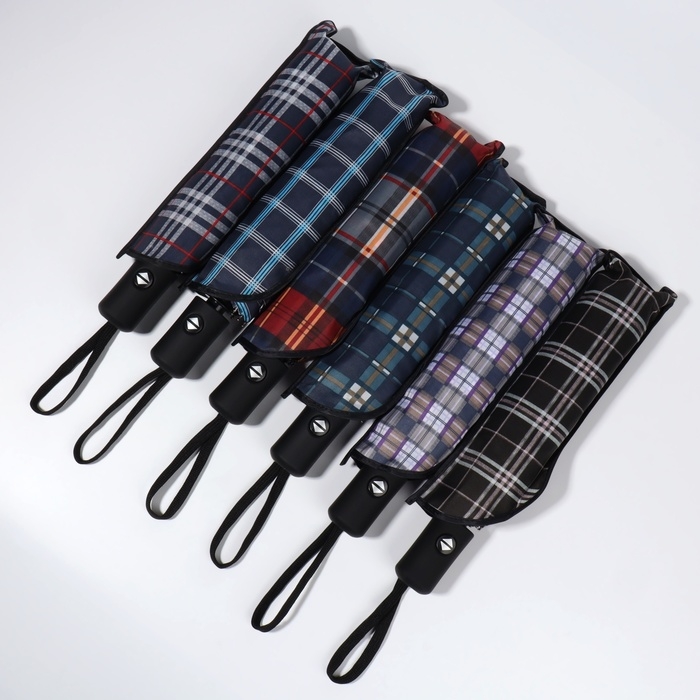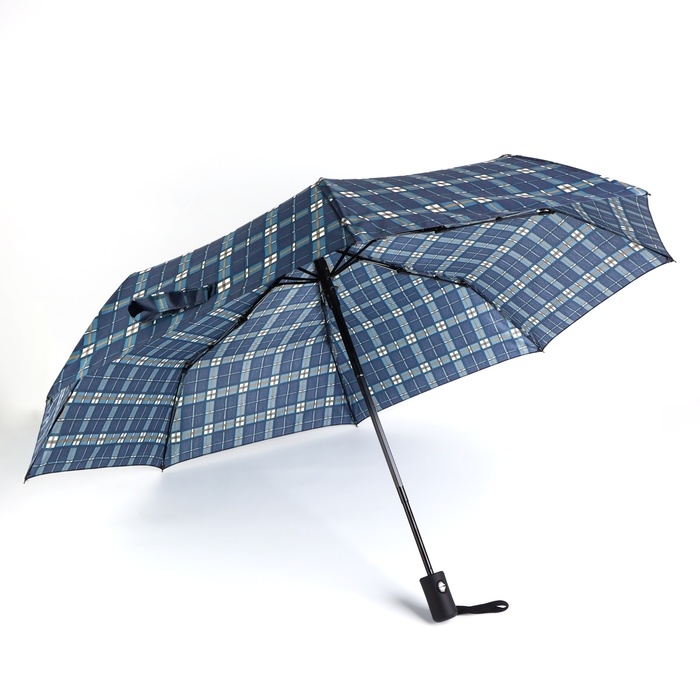 Зонт автоматический «Клетка», эпонж, 3 сложения, 8 спиц, R = 48/55 см, D = 110 см, цвет МИКС
