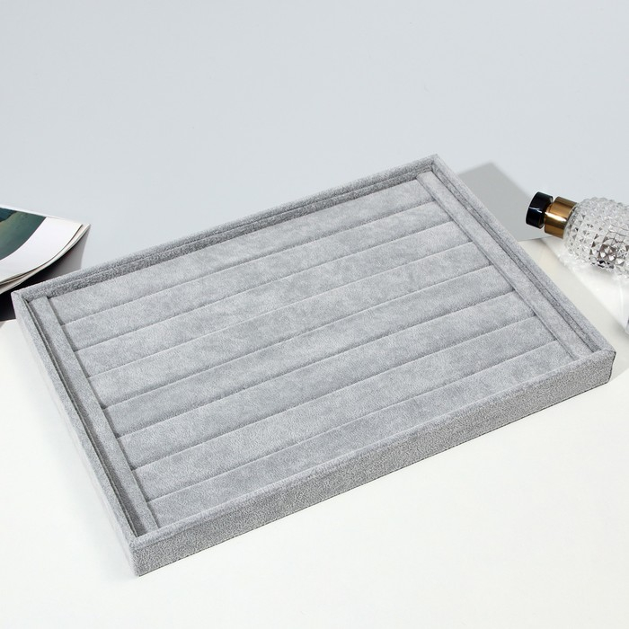 Подставка для колец 7 полос, флок, 35×24×3 см, цвет серый