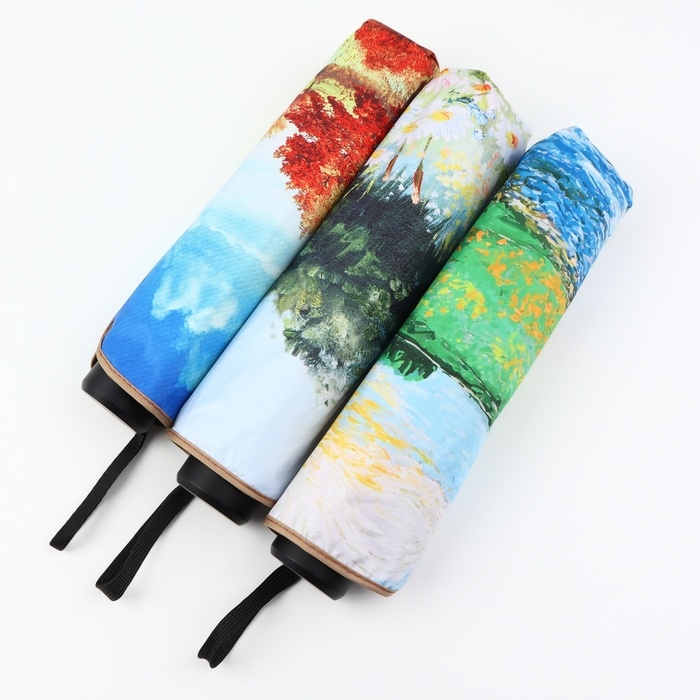Зонт механический «Пейзаж», эпонж, 4 сложения, 8 спиц, R = 48/55 см, D = 110 см, цвет МИКС