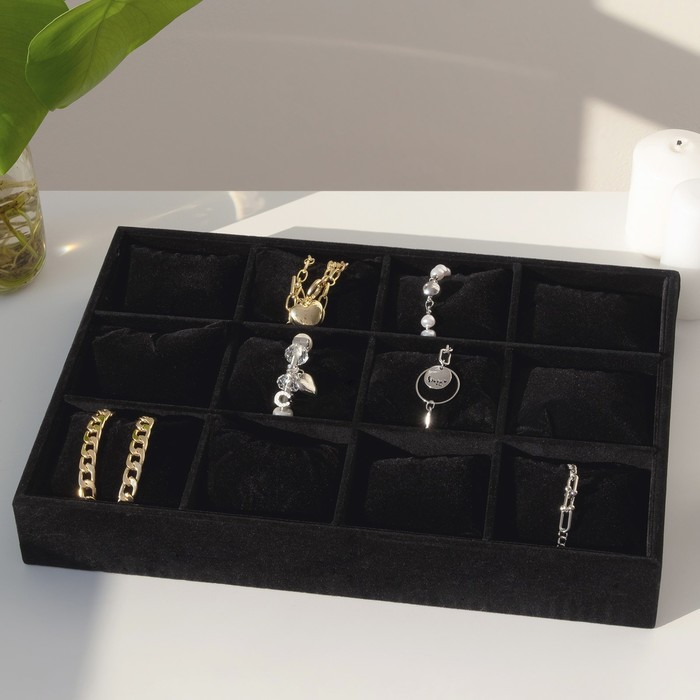 Подставка для часов, браслетов, 12 мест, 35×24×5 см, цвет чёрный