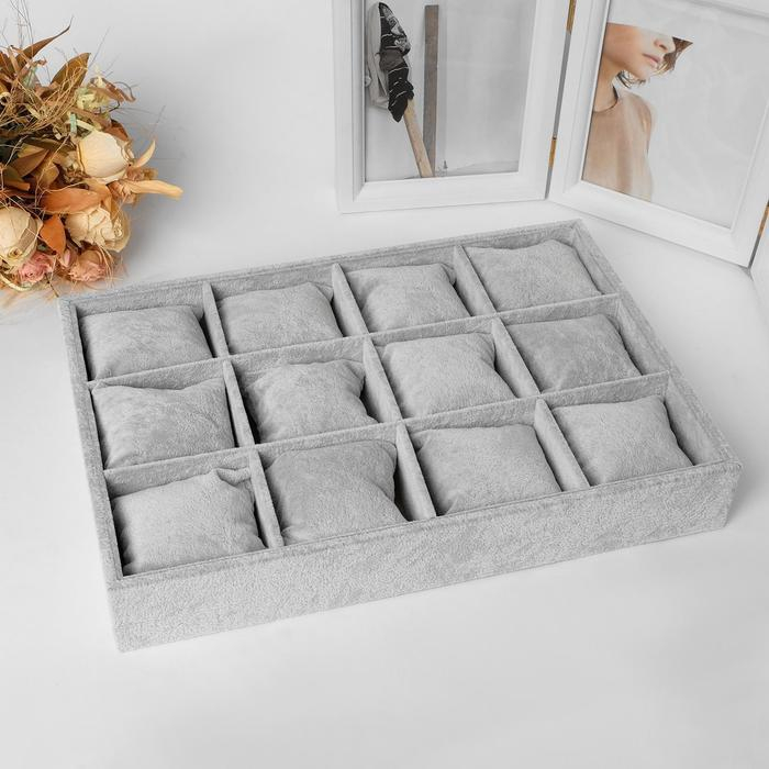 Подставка для часов, браслетов, 12 мест, 35×24×5 см, цвет серый
