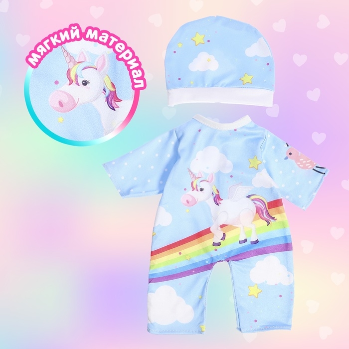 Одежда для пупса «Радужный единорог»: комбинезон, шапочка