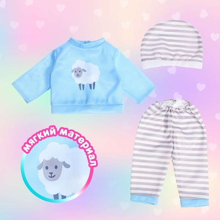Одежда для пупса «Барашки», штаны, кофточка, шапочка