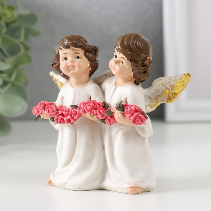 Сувенир полистоун "Два ангела в платье с гирляндой из роз" 8,7х10х4,2 см