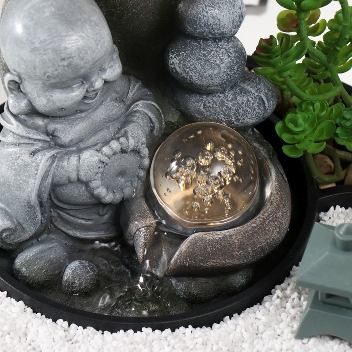 Фонтан настольный от сети, подсветка "Маленький хотей в саду Дзен" 21х21х21 см