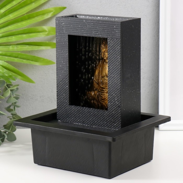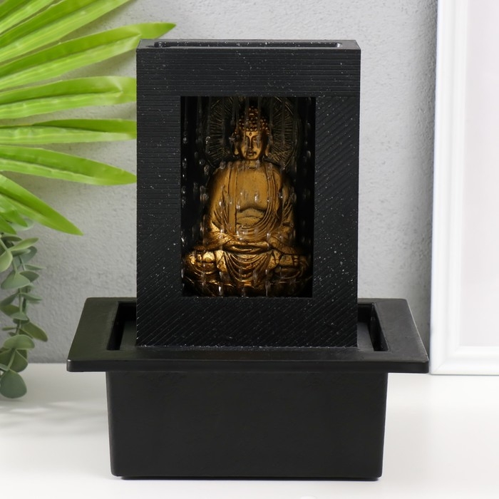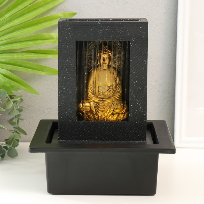 Фонтан настольный от сети, подсветка "Медитация золотого Будды в гроте" 21х17,5х25 см