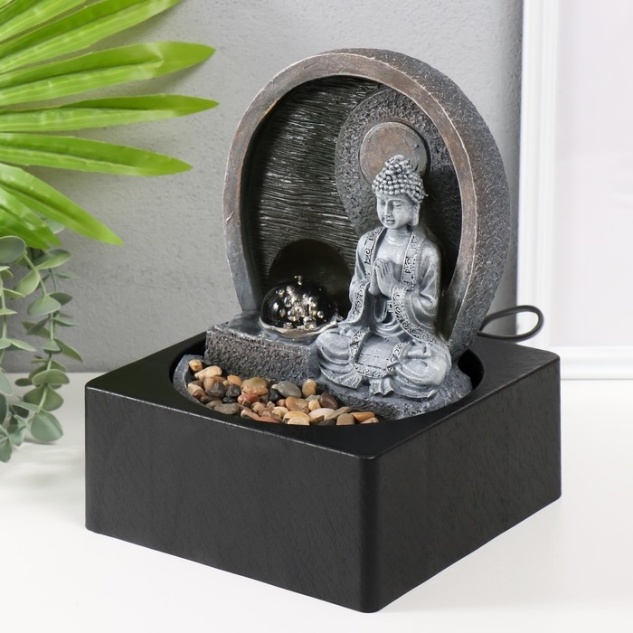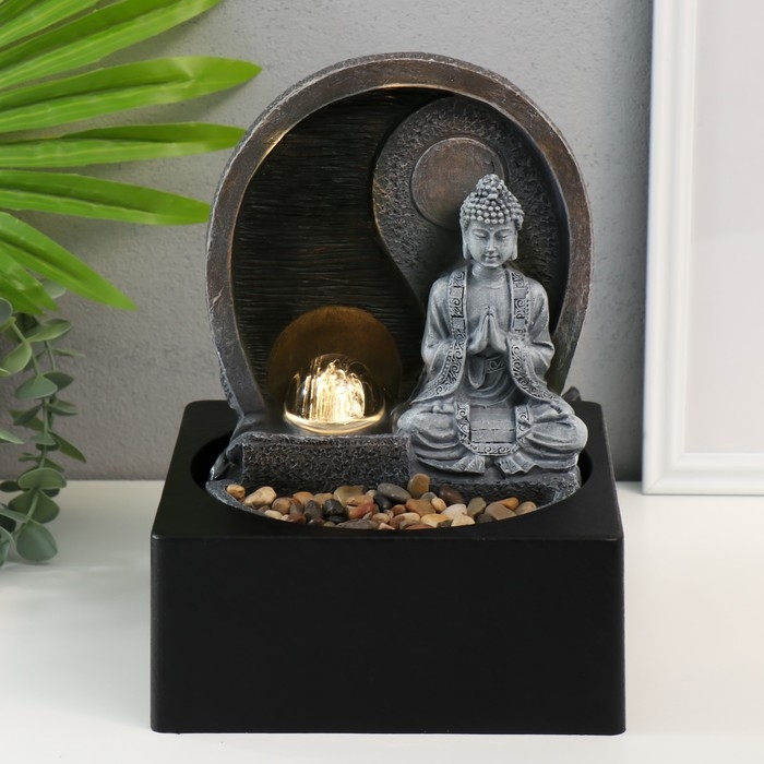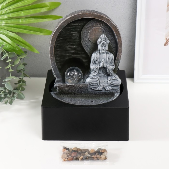 Фонтан настольный от сети, подсветка "Будда под луной" 18х18х24 см