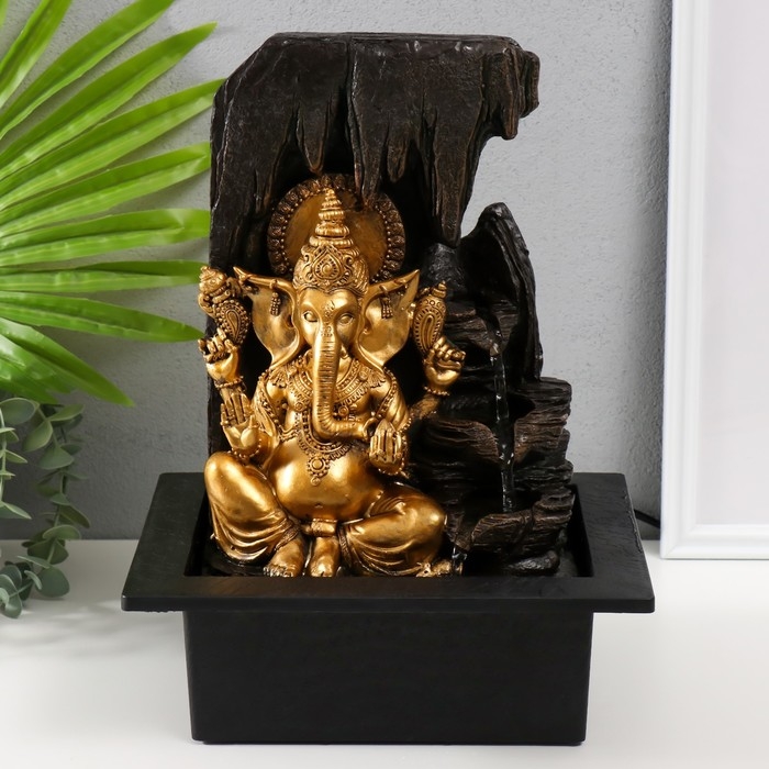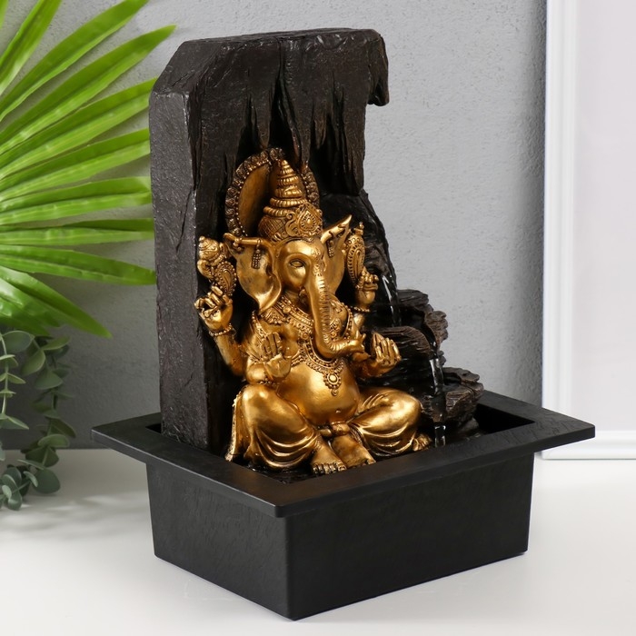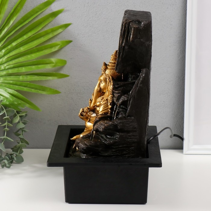 Фонтан настольный от сети, подсветка "Золотой Ганеша в гроте" 25х20х33 см