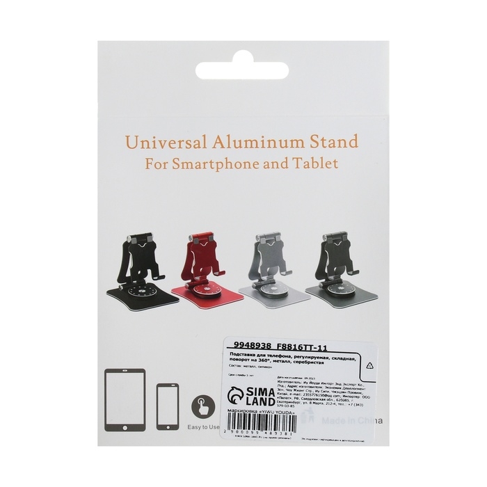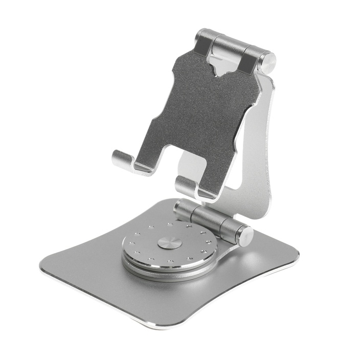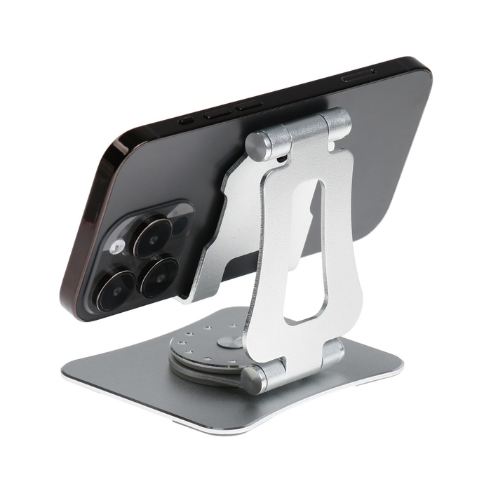 Подставка для телефона, регулируемая, складная, поворот на 360°, металл, серебристая