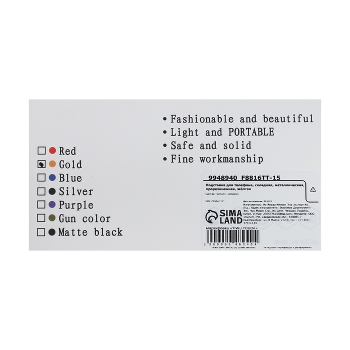 Подставка для телефона, складная, металлическая, прорезиненная, жёлтая