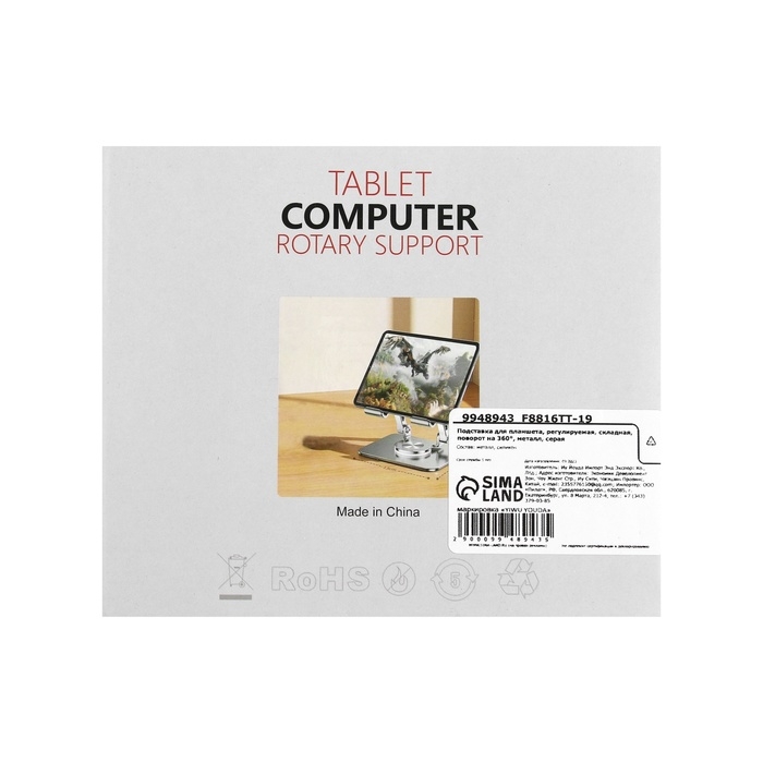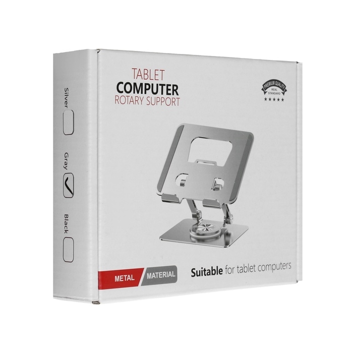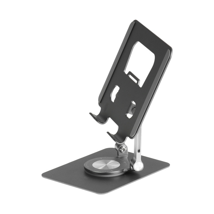 Подставка для планшета, регулируемая, складная, поворот на 360°, металл, серая