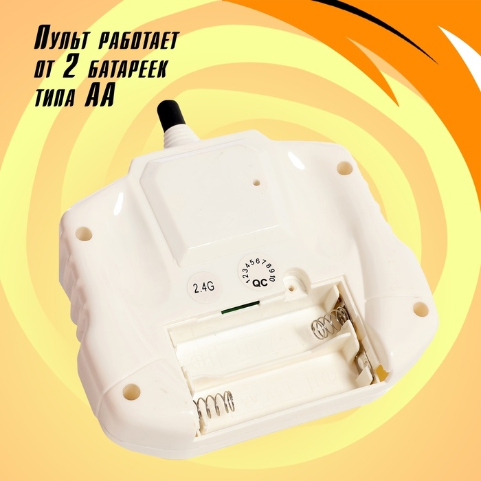 - Пульт управления работает от 2 батареек типоразмера АА (нет в комплекте).