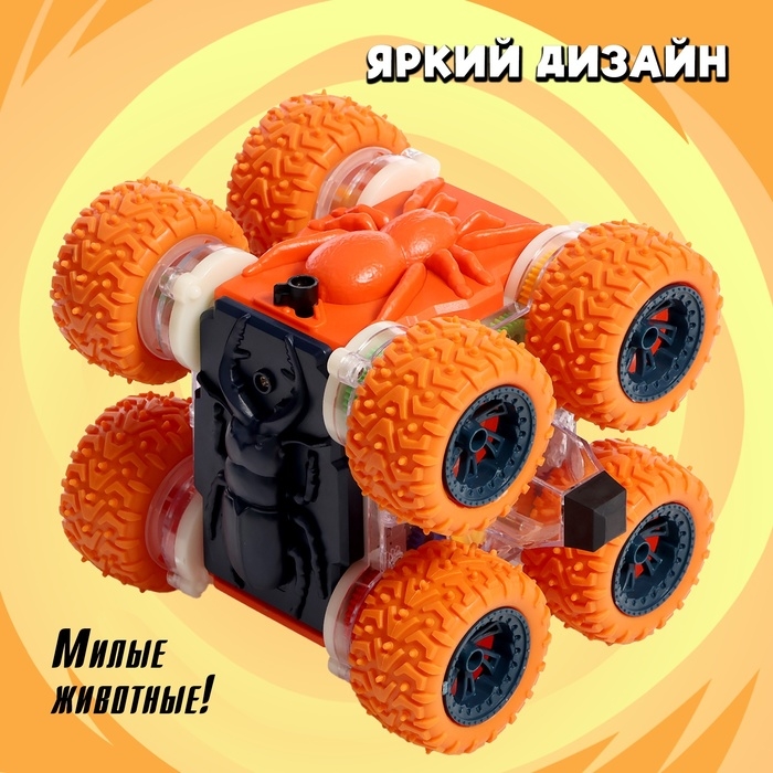 - Машинка легко преодолевает любые препятствия, переворачиваясь на 360°.