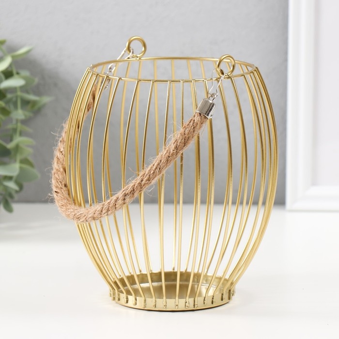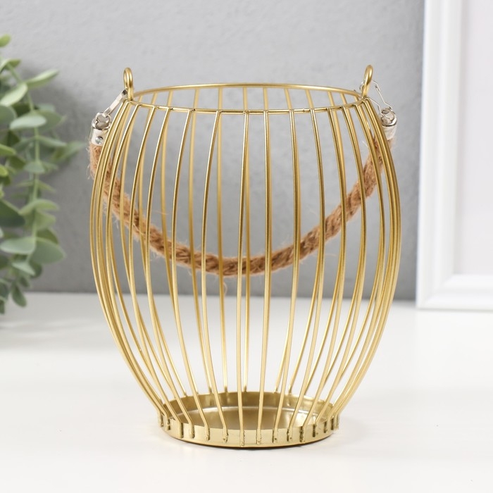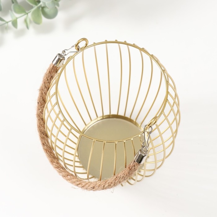 Подсвечник металл, текстиль на 1 свечу "Корзина" d=10 см бронза 15х15х17 см