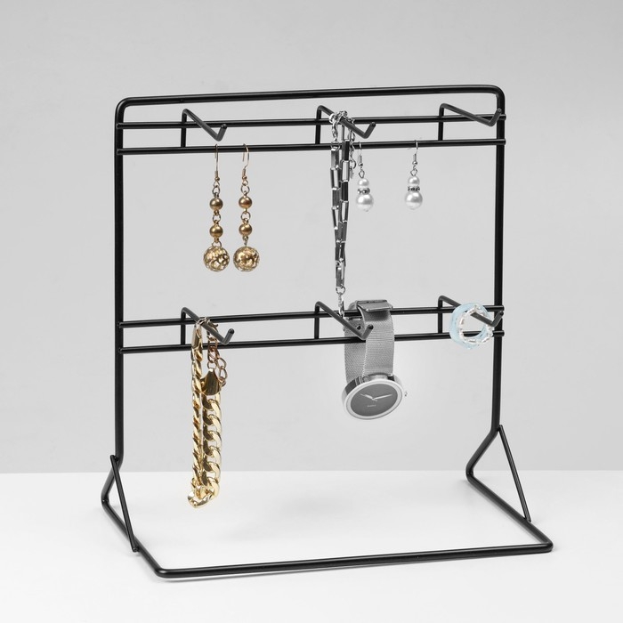 Подставка для украшений «Стойка настольная», 6 крючков 9 см, 25×15×26,5 см, цвет чёрный