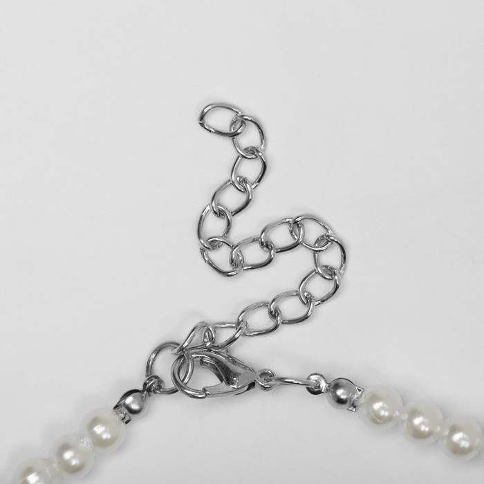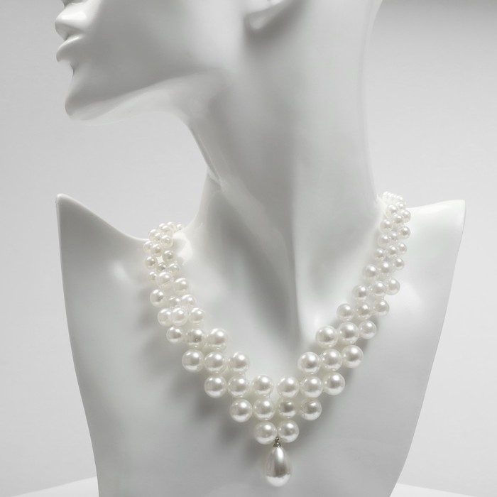 Колье с жемчугом «Капля» v-образное, бусины №6, 8, 10, цвет молочный в серебре, 40 см
