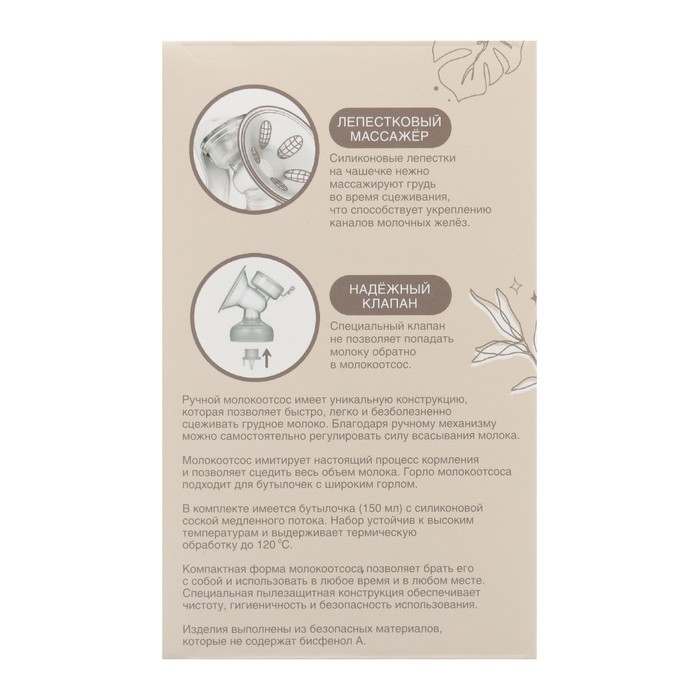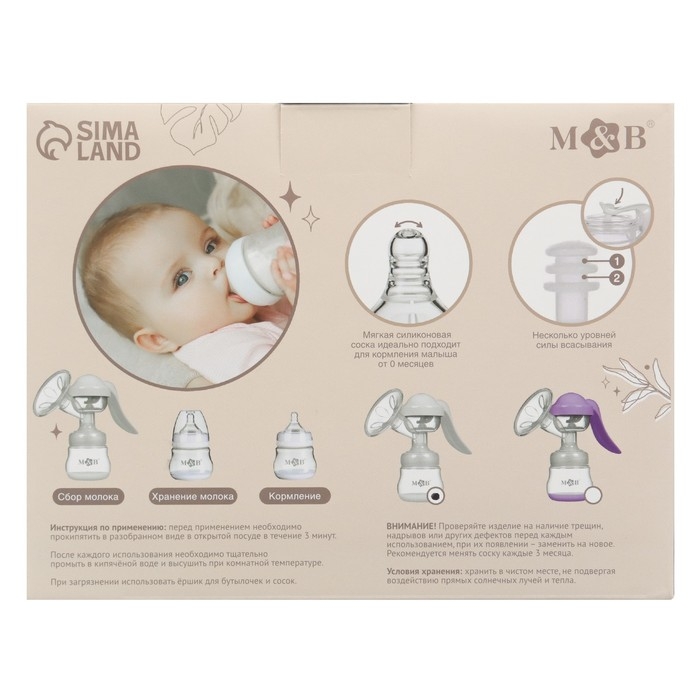 Ручной молокоотсос с бутылочкой (широкое горло) и соской для кормления новорожденных.