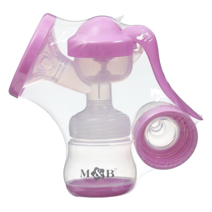 Молокоотсос ручной механический с бутылочкой для кормления ШГ и соской, 150 мл., цвет розовый