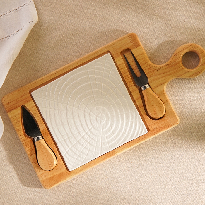 Изысканное сочетание минимализма и функциональности — набор для подачи сыра «Тренто» станет вашим незаменимым помощником при организации стильных и уютных вечеров. Этот комплект, включающий в себя фарфоровую доску, деревянную подставку, нож и вилку, создан для того, чтобы ваши сырные дегустации стали настоящим гастрономическим ритуалом.