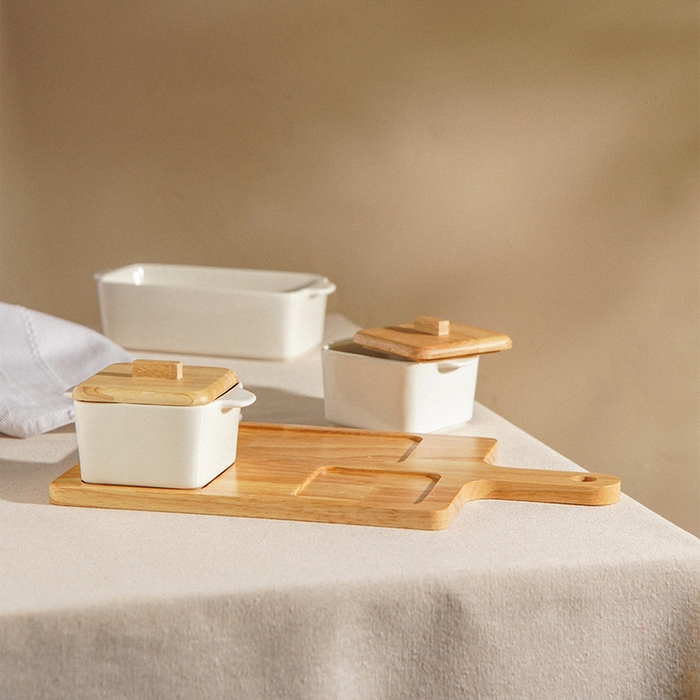 Элегантный набор для подачи блюд «Тренто» от SL Home представляет собой гармоничное сочетание стиля и функциональности. Включая три ёмкости из прочного белого фарфора объемом 500 мл и 250 мл, а также деревянную подставку, этот комплект станет идеальным дополнением к вашему столу, придавая ему утончённость и современный вид.