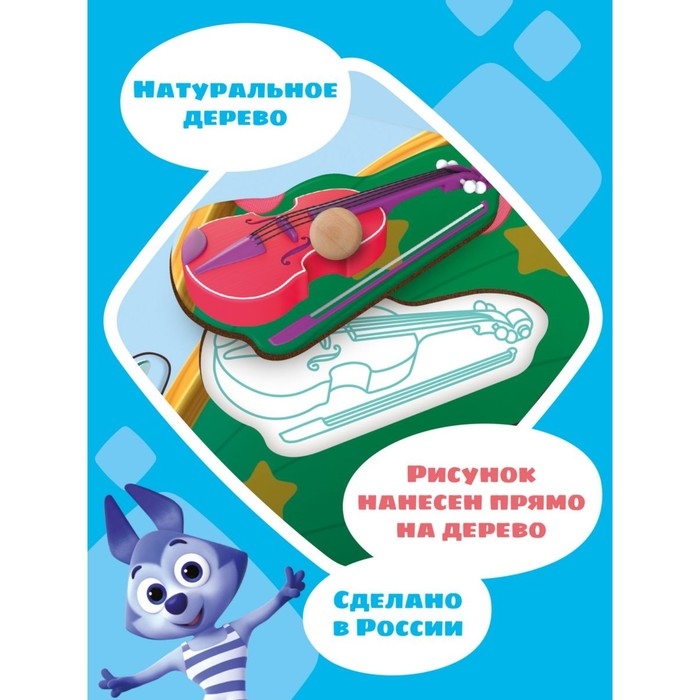 Котёнок Мур приглашает детей в захватывающее путешествие по миру музыки! Обучающая игра от «MAPACHA» состоит из игрового поля и семи фигурных элементов, которые представляют музыкальные инструменты и известного мультяшного героя. Изображения высокого качества нанесены на дерево, что делает их прочными и яркими. Элементы подходят для маленьких рук и легко удаляются из рамки.