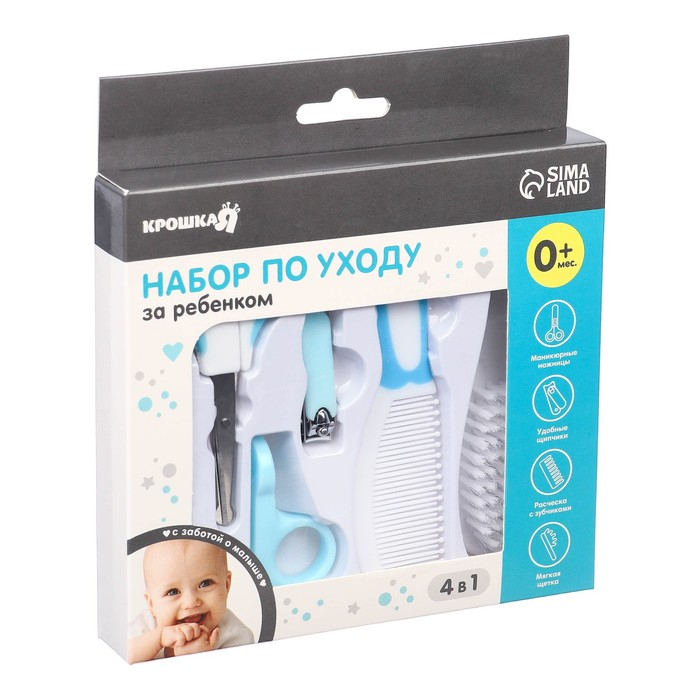 Набор по уходу за ребёнком, 6 предметов: детская расчёска, щётка, книпсер с чехлом, безопасные ножницы с колпачком, для мальчика
