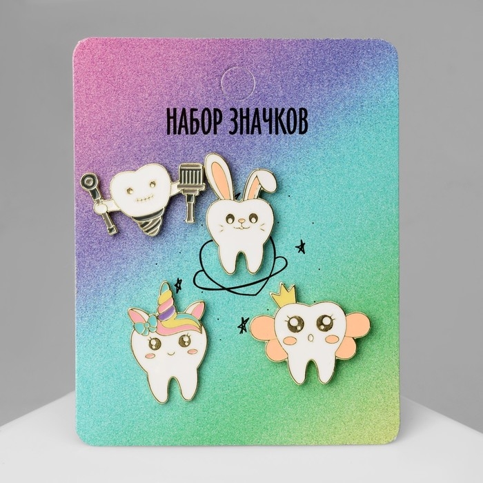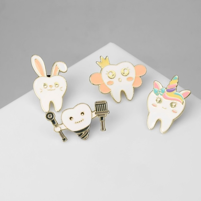 Набор значков (4 шт.) «Зубы», цветной в золоте