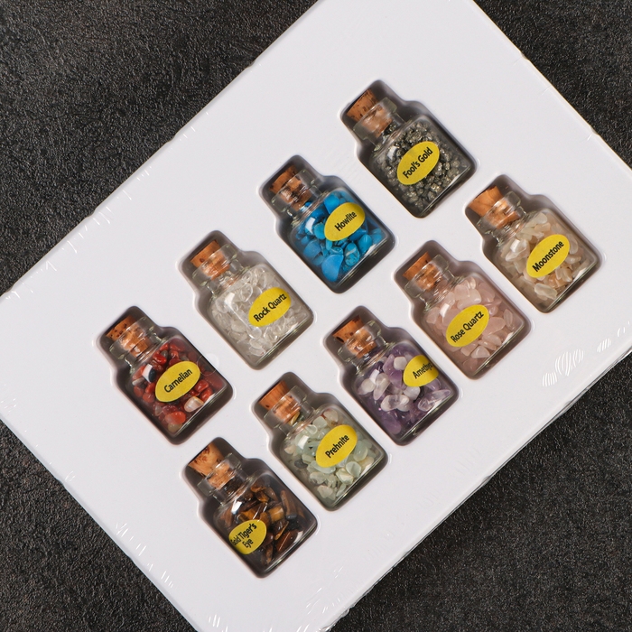 Коллекция кристаллов в баночке, 9 баночек