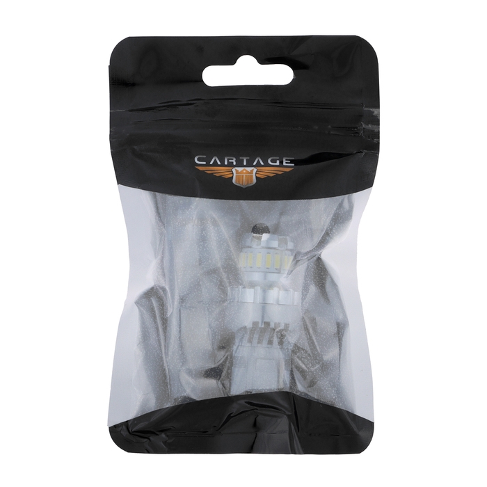 Автолампа Cartage представляет собой светодиодную лампу типа W21W с рабочим напряжением 12В. В комплекте поставляются 2 лампы белого света (6500К).