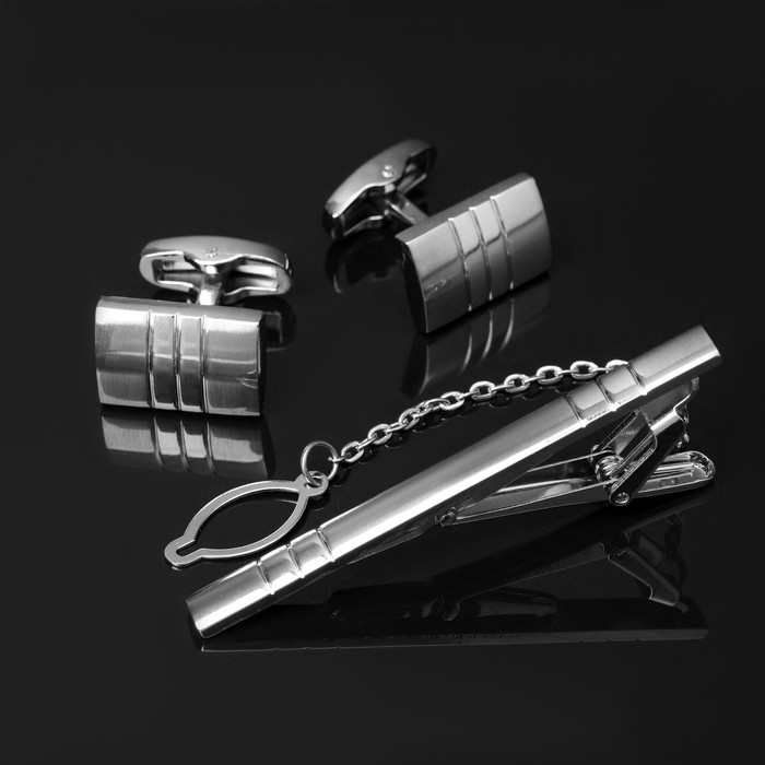 Набор мужской стальной «Запонки + Зажим для галстука» брутальность, цвет чёрный в серебре