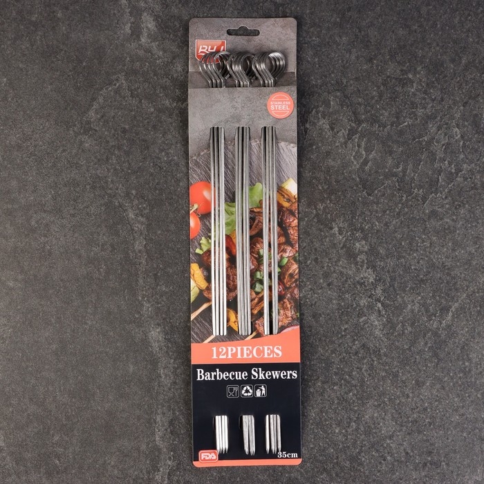 Набор шпажек для шашлыка, металлические, 12 шт, 35 см