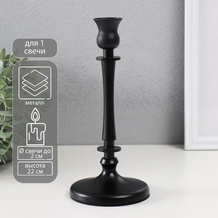 Подсвечник металл на 1 свечу "Шанто" d=2 см чёрный 10х10х22 см