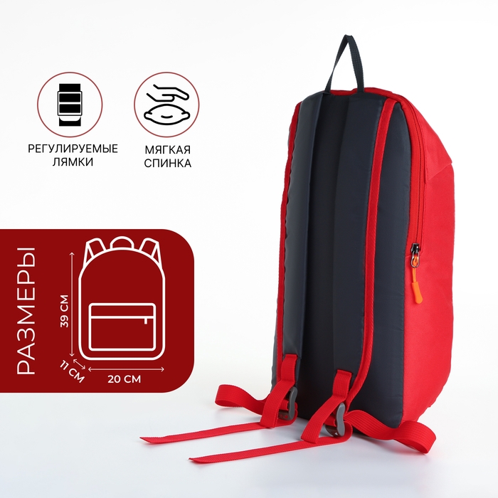 Рюкзак спортивный на молнии, TEXTURA, наружный карман, цвет красный