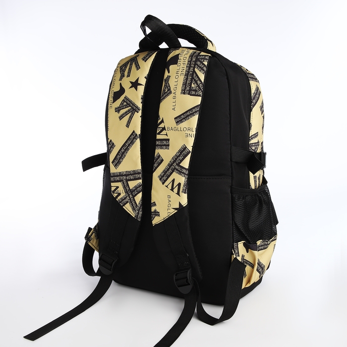 Рюкзак школьный на молнии, 5 карманов, цвет чёрный/жёлтый