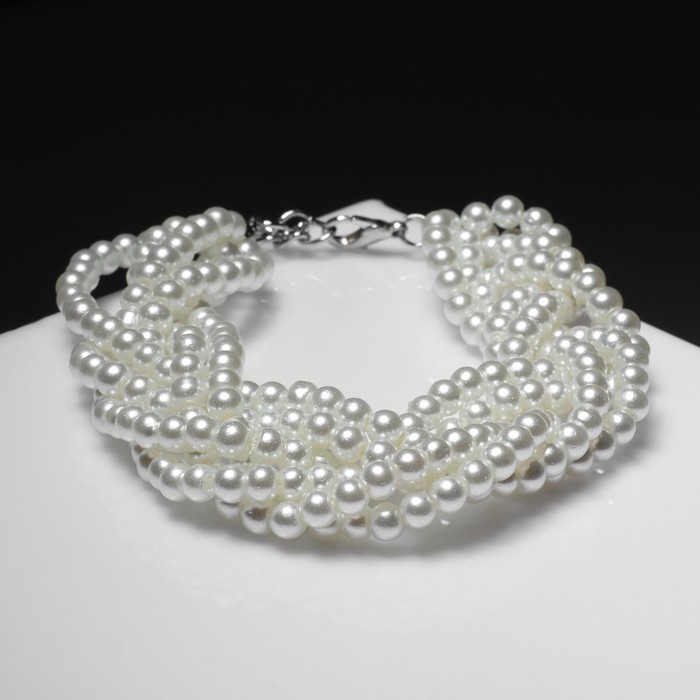 Браслет жемчуг «Жгут», 6 нитей, бусины №4, цвет молочный в серебре